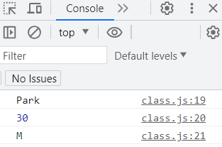 class는 이런식으로 내부에서 생성자를 통해 객체가 만들어지고 해당 메서드나 프로퍼티에 객체를 통해 접근해서 사용하는 방식으로 사용된다. 클래스내에 정의한 메서드는 해당 클래스의 프로토타입으로 저장된다.